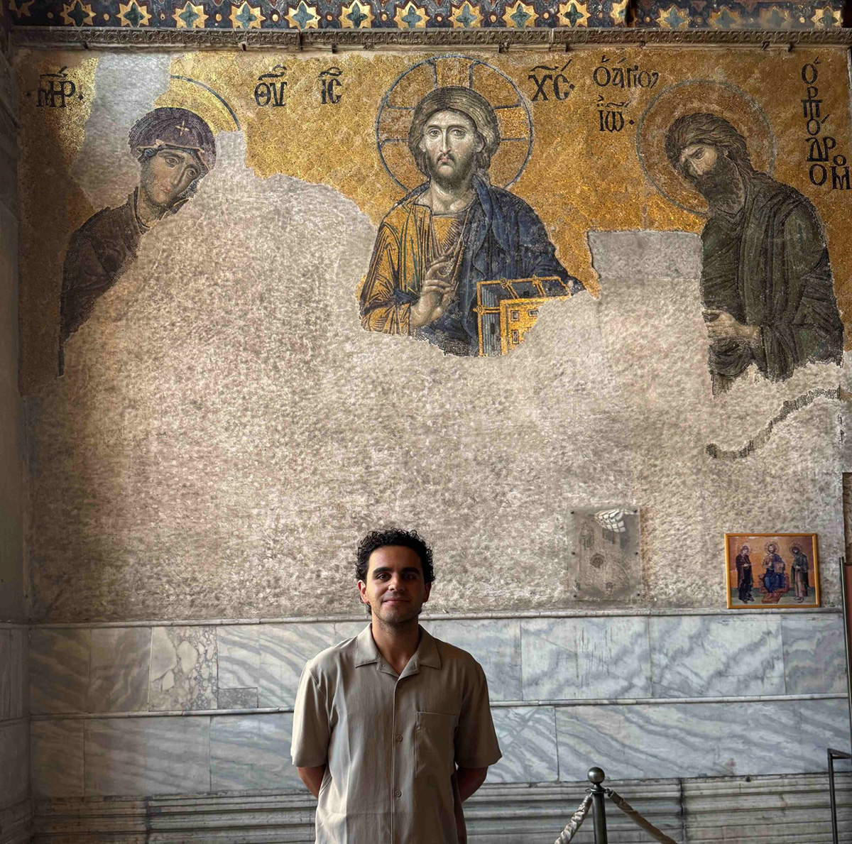 First, the iconography continues to stun. Because so much of Byzantine Constantinople has been erased, the few icons that survive to the present day stand out sharply against their modern, predominantly Muslim backdrop. The erasure has not, of course, been accidental; destruction of icons is often a top priority for invaders looking to subjugate and demoralize indigenous Orthodox Christian populations. One Ottoman chronicler emphasized after the taking of Constantinople in 1453 that “the churches which were within the city were emptied of their vile idols[] and cleansed from their filthy and idolatrous impurities” (Roger Crowley, ‘1453’, New York: Hachette Books, 2023, p. 245); the Turkish invasion of Cyprus in 1974 similarly left many a church sacked or graffitied. In Constantinople today, some of the foremost masterpieces of the Byzantine iconographic tradition— the Deisis Mosaic in the Hagia Sophia and the frescoes in the Chora Church, for example— are irreparably damaged, either plastered over or with eyes and faces gouged and scratched beyond recognition. The Platytera icon in the Hagia Sophia, one of Orthodoxy’s most cherished depictions of the Virgin Mary and Christ Child, is draped over with fabric curtains, only partially viewable from a small nook on the building’s second floor.