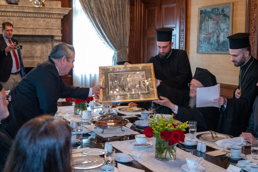 Also present was His Eminence Archbishop Elpidophoros of America; the Hierarchs and other members of the Patriarchal delegation; and the Spiritual Advisor of the Archons of the Ecumenical Patriarchate, the Rev. Protopresbyter of the Ecumenical Throne Alexander Karloutsos. Ekaterini Nassika, the Ambassador of Greece to the U.S.; and members of the Turkish diplomatic mission were likewise in attendance.