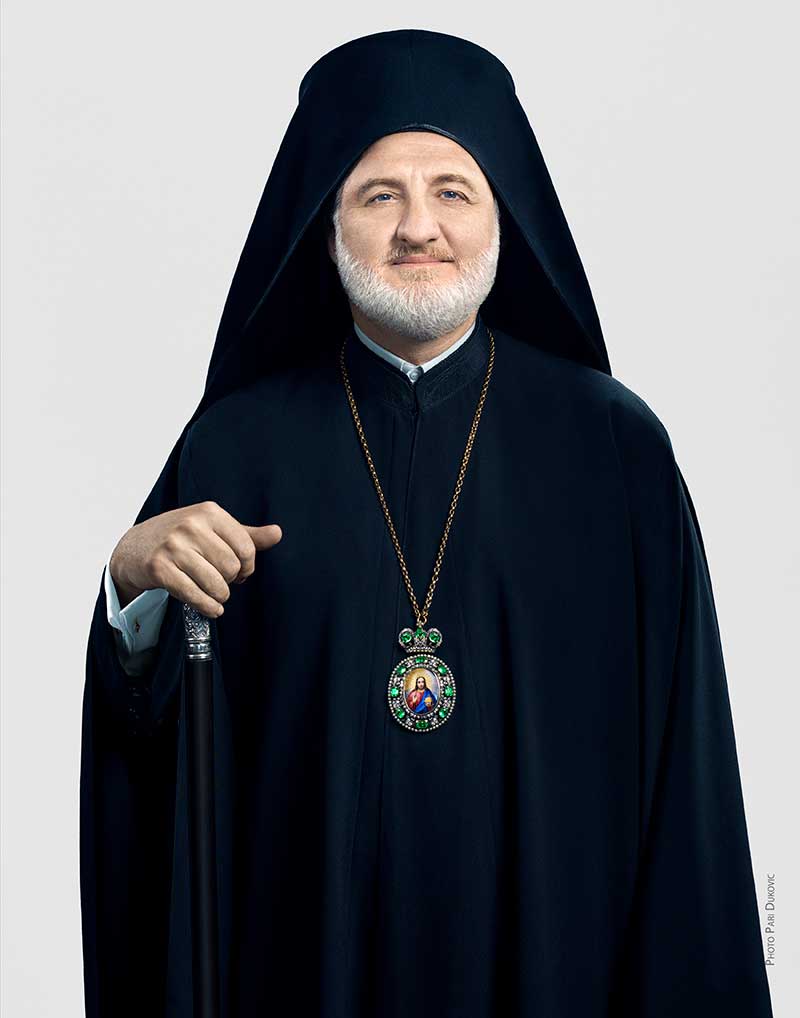 Elected Archbishop of America on May 11, 2019 His Eminence Archbishop Elpidophoros (Lambriniadis) of America was born in 1967 in Bakirköy, Istanbul. He studied at the Department of Pastoral Theology at the Theological School of the Aristotle University of Thessaloniki, graduating in 1991. In 1993, he completed postgraduate studies at the Philosophical School of the University of Bonn in Germany, submitting a dissertation entitled: “The Brothers Nicholas and John Mesarites.” He was ordained to the Diaconate in 1994 at the Patriarchal Cathedral and appointed Kodikographos (Scrivener) of the Holy and Sacred Synod. In 1995, he was appointed Deputy Secretary of the Holy and Sacred Synod. From 1996-1997 he studied at the Theological School of St. John the Damascene in Balamand, Lebanon, where he advanced his knowledge of the Arabic language. In 2001, he presented a doctoral dissertation at the Theological School of the Aristotle University of Thessaloniki under the title: “Severus of Antioch and the Council of Chalcedon” and was proclaimed a Doctor of Theology. In 2004, he was invited to Holy Cross Greek Orthodox School of Theology in Boston, where he taught as Visiting Professor for a semester. In March 2005, at the proposal of His All-Holiness Ecumenical Patriarch Bartholomew, he was elevated by the Holy and Sacred Synod to the position of Chief Secretary and ordained to the priesthood by the Ecumenical Patriarch in the Patriarchal Cathedral. In 2009, he submitted two dissertations to the Theological School of Thessaloniki and was unanimously elected Assistant Professor of Symbolics, Inter-Orthodox Relations, and the Ecumenical Movement. The dissertations are entitled: “The Synaxes of the Hierarchy of the Ecumenical Throne (1951-2004)” and “Luther’s Ninety-five Theses: Historical and Theological Aspects. Text – Translation – Commentary.” In March 2011, he was elected Metropolitan of Bursa and in August of the same year was appointed Abbot of the Holy Patriarchal and Stavropegial Monastery of the Holy Trinity on the island of Halki. He has served as Orthodox Secretary of the Joint International Commission for the Theological Dialogue between the Orthodox Church and the Lutheran World Federation and member of the Patriarchal delegations to the General Assemblies of the Conference of European Churches and the World Council of Churches. He was the Secretary of the Pan-Orthodox Synods in Sofia (1998), Istanbul (2005), Geneva (2006), and Istanbul (2008). He has been a member of the Faith and Order Commission of the World Council of Churches since 1996.
